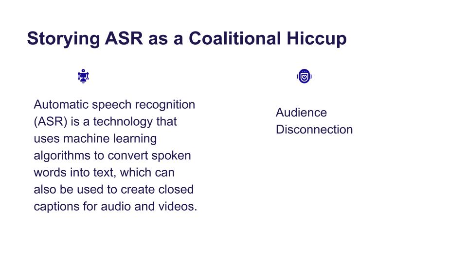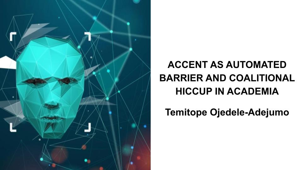 Presenting at a prestigious conference was a significant milestone for me, reflecting months of dedicated work with my professor and colleague on a project deeply rooted in human values and social justice. As an African international student in the United States, I was enthusiastic about sharing our findings with a like-minded audience. Slotted last on the panel, I approached the presentation with excitement, buoyed by a previous solo presentation success. However, the panel’s requirement to use a single laptop with an Automated Speech Recognition (ASR) program for closed captioning presented an unexpected challenge. Speaking quickly to cover all points, I noticed a disconnect with the audience. In an effort to address the issue, the moderator stepped in, adjusted the microphone, and suggested that I “move closer to the mic to be more audible.” The real issue, however, was that the ASR system favored American accents and struggled with my Nigerian accent. This bias shifted the focus of the communication problem onto me, rather than highlighting the inherent flaws in the ASR design, resulting in a form of exclusionary othering that impeded effective communication.